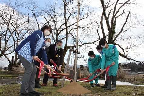 当機構は、「緑の募金」を活用した「学校環境緑化モデル事業」を南砺市立福光南部小学校において実施しました。