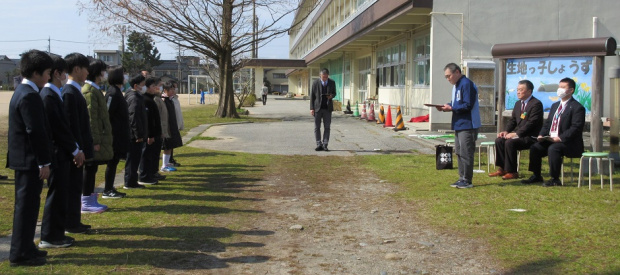 完成式典では、竹原考利教頭の司会で、斉藤康校長のあいさつ、石田和人とやま緑化推進機構専務理事の事業説明、三由孝博ローソン黒部古御堂店オーナーのあいさつがありました。