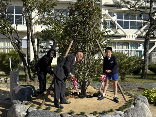 また、完成式典では、創立150周年を記念して「キンモクセイ」の記念植樹も行われました。