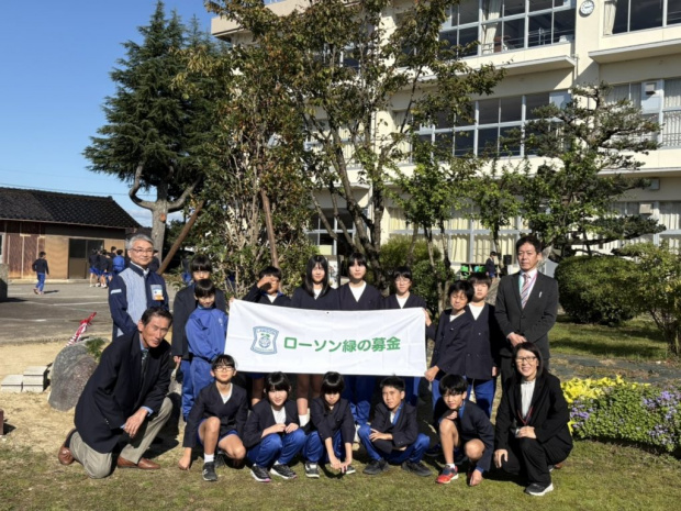 本事業は、株式会社ローソンの社会貢献活動の一環として、各店舗に設置された募金箱等に寄せられた募金を公益社団法人国土緑化推進機構へご寄付いただき、それを活用して、株式会社ローソン、公益社団法人国土緑化推進機構、公益社団法人とやま緑化推進機構が協力のもと、「学校環境緑化モデル事業」として平成18年より実施しているものです。