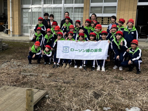 この事業は、㈱ローソンの社会貢献活動として、各店舗に設置されている募金箱などに寄せられた募金を(公社)国土緑化推進機構へ寄付して頂き、それを活用して、㈱ローソン、(公社)国土緑化推進機構及び(公社)とやま緑化推進機構が協力し、「学校環境緑化モデル事業」として平成18年から実施しているものです。