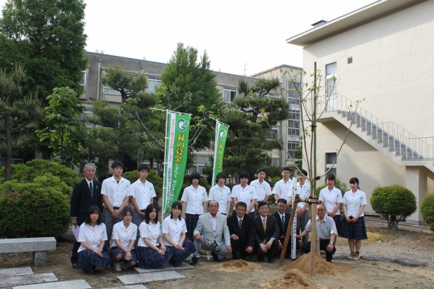 平成29年度より、「第68回全国植樹祭(富山県)」の開催を記念して、より一層、緑の大切さを知っていただくことを目的として、新たに高等学校1校程度に「記念植樹用樹木」を贈呈する「ふるさとの学び舎記念植樹」を始めました。