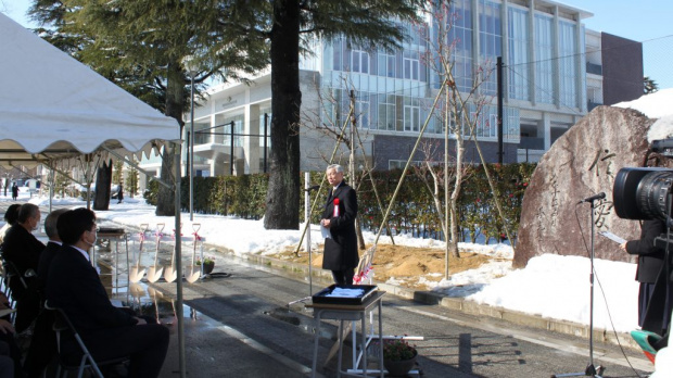 今回は、創立100周年を迎えた富山県立富山中部高等学校において、2月19日に「記念植樹式」が行われました。