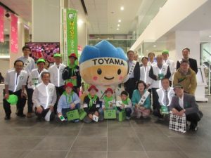 「第65回全日本チンドンコンクール」に合わせ、富山県民会館入口で、富山市花とみどりの少年団と和田麗子 緑の募金運営協議会会長をはじめ役員の皆様方で「緑の募金」活動を行いました。